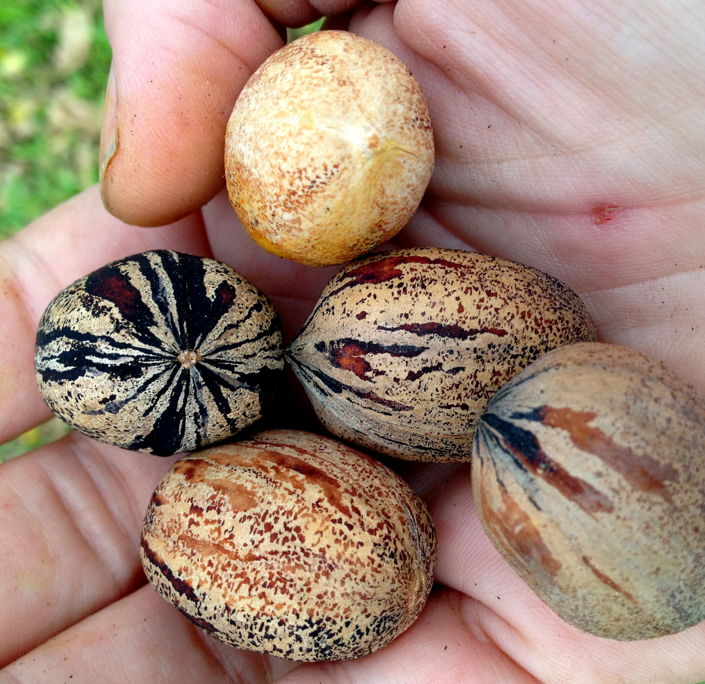 And gathering is what I have been doing, on the weekend afternoons, from two big trees in our backyard. It’s a contemplative practice, it’s about noticing. What I have been noticing is how satisfying it is, my eyes picking out the pattern of the rounded brown nut in between the crinkled grey leaves and bright green spikes of winter rye grass. I have been noticing the absolute beauty of the drupes and their peeling husks on the tree, grouped in symmetrical threes. The thin black lines like zebra stripes running down the end of each nut. Patterns everywhere. And the way my whole body responds to them – it’s not just fun to gather pecans because I know they are healthy and protein-rich and, let’s face it, free. There is something else, a physiological response to picking out the patterns that feels so right. And it makes sense – this is what our bodies evolved for, over millions of years. This is why our eyes even exist. The ability to pick out patterns is what helps us find food, see predators, survive.